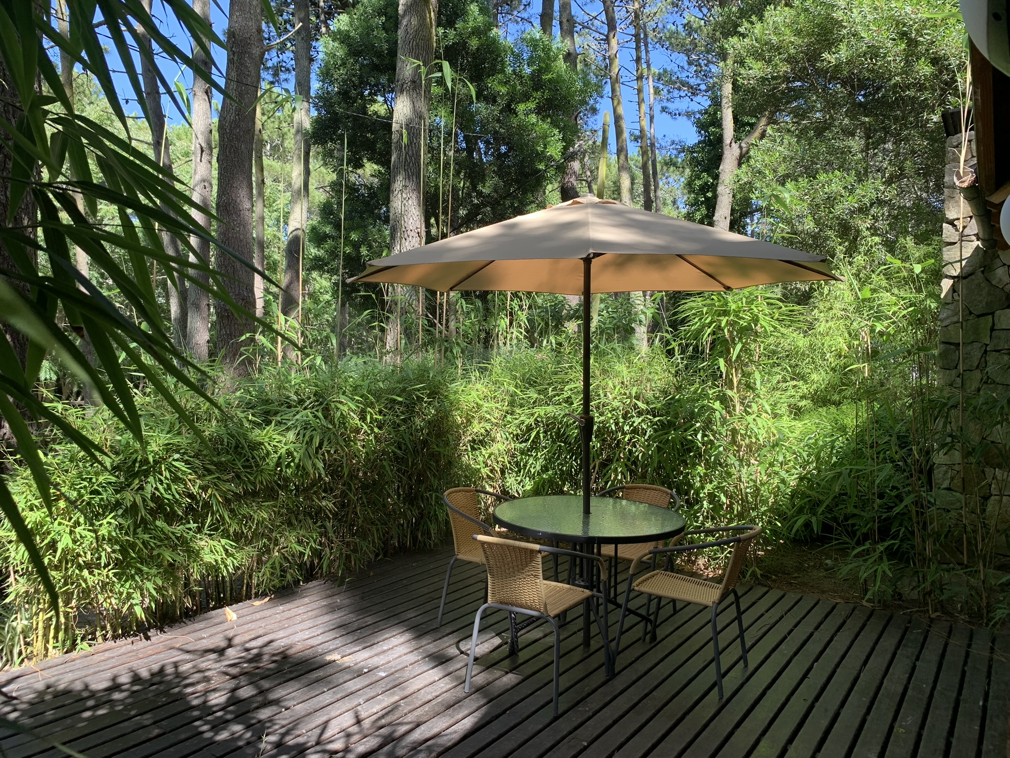 En planta alta, habitación matrimonial con sommier queen (1.60 x 2.00 mts) divisible en 2 camas de 1 plaza, placard y TV de 26". Deck privado con parrilla.